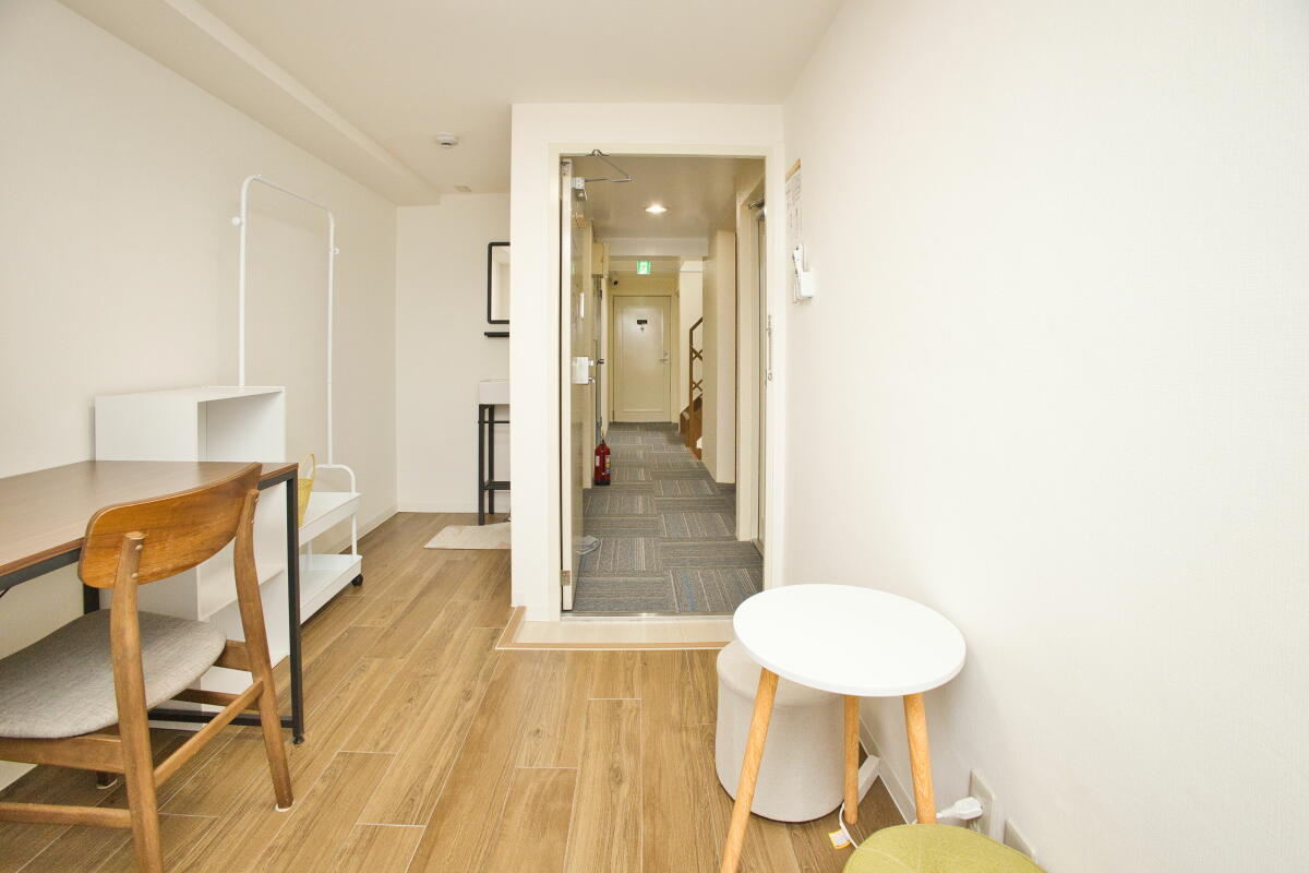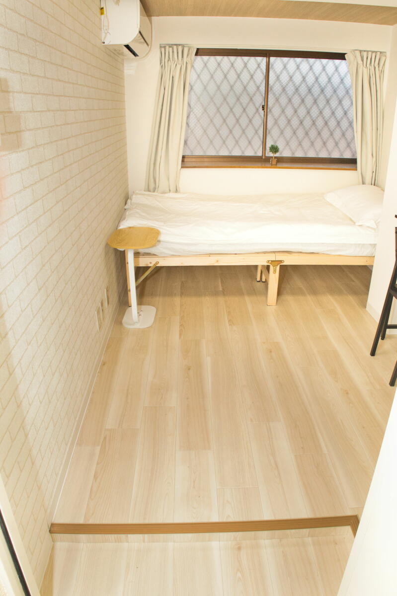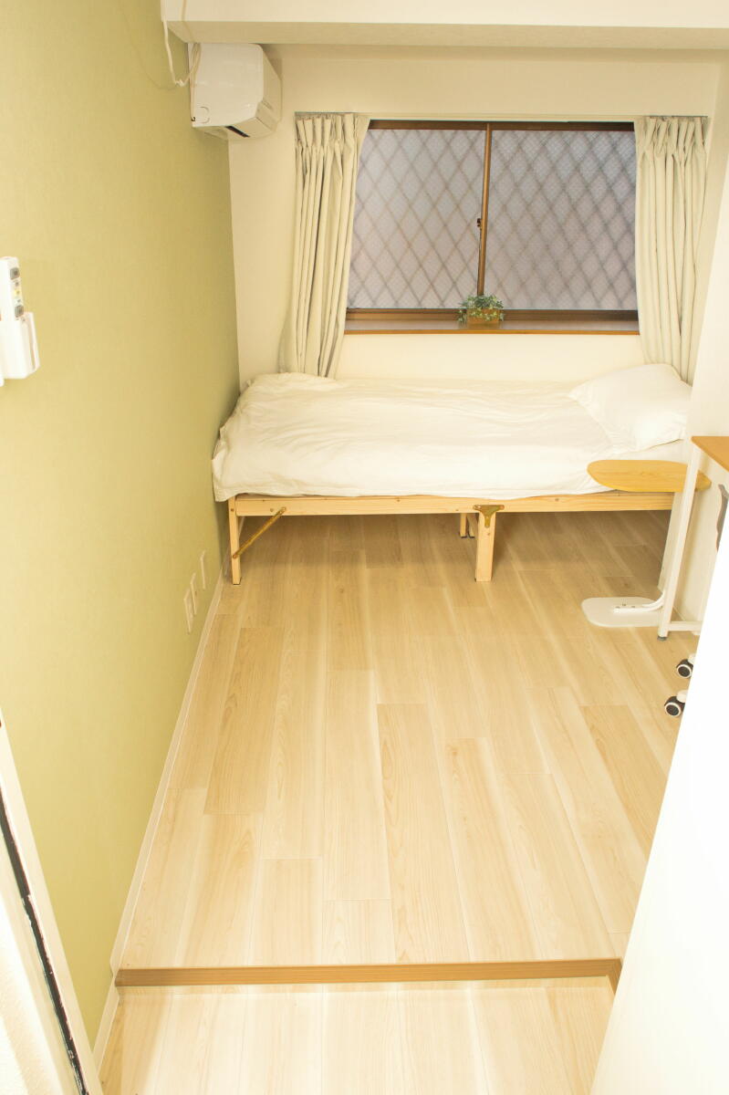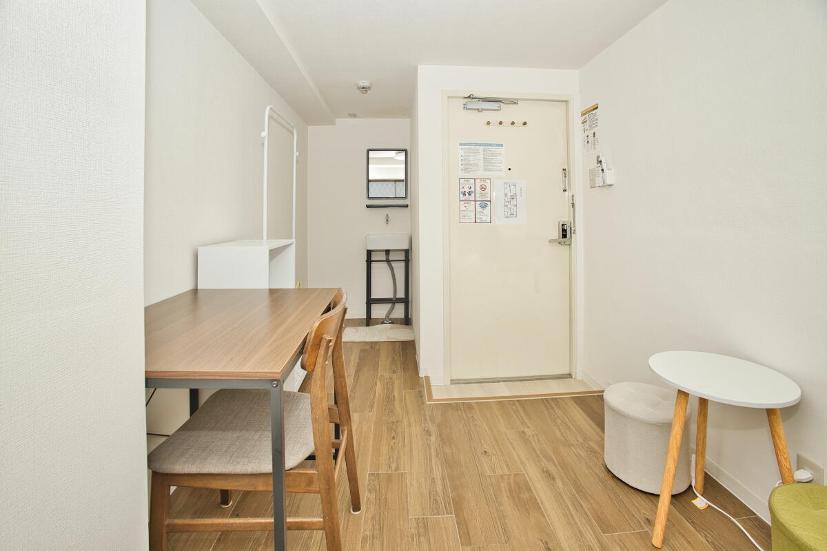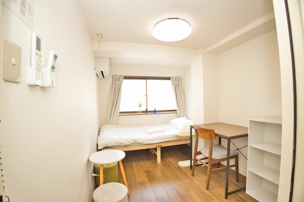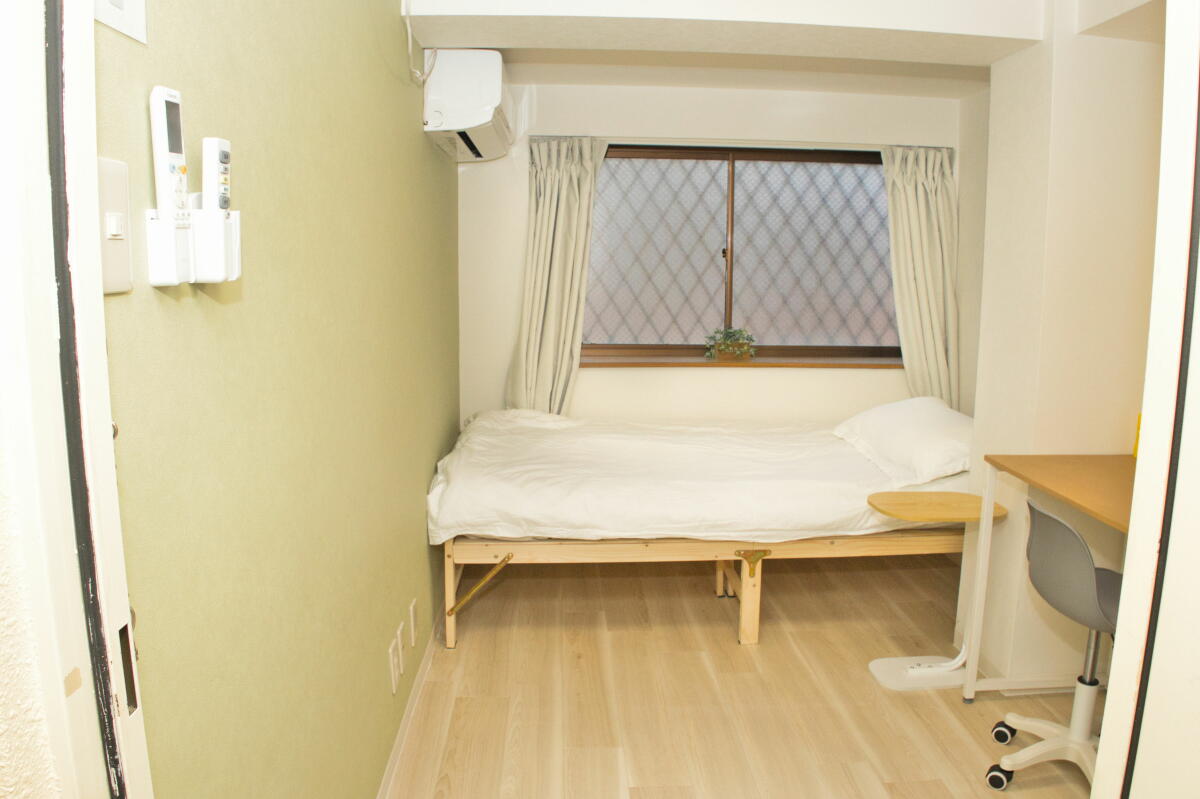 26名定員 / 各個室は7.5~8㎡・ベッド、エアコン、冷蔵庫、机、椅子、バス・トイレ・洗面、収納付き