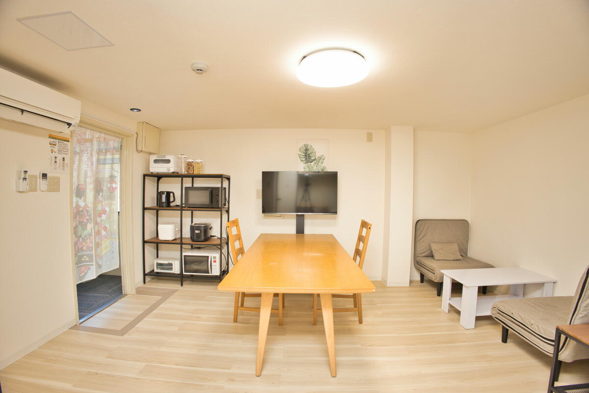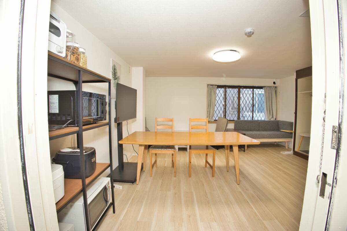 共用エリアは、キッチン1ヵ所、リビングルーム1カ所、洗濯機・乾燥機をご用意