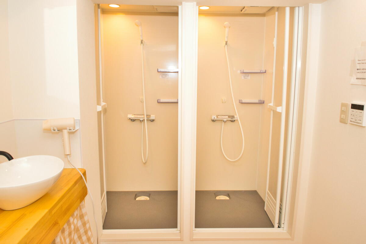 ホテルライクで清潔、シャワー・トイレ数も多く快適。