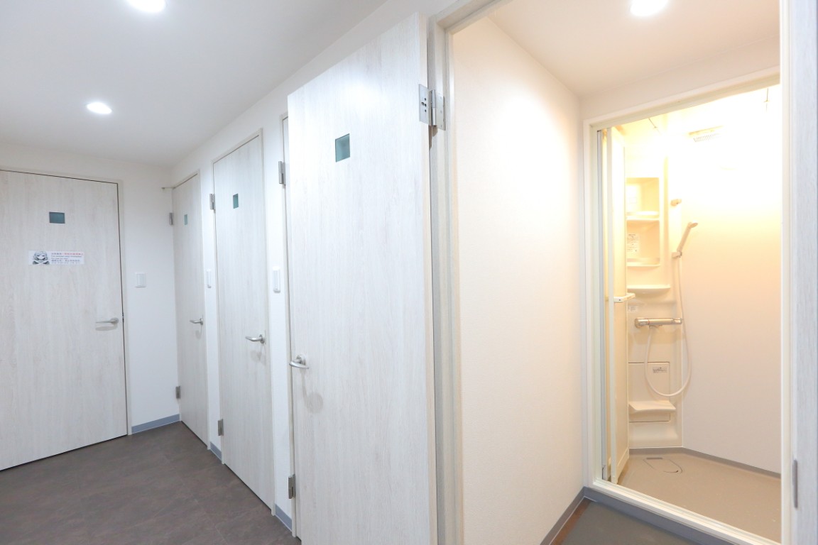 The Maison Hankyu Tsukaguchi is a 46-room shared house. It aims to provide a tranquil residence for those who value both solitude and a comfortable distance from others. Those who value a lifestyle of freedom yet gentle connection will surely find a comfortable stay here. The lounge offers a variety of seating options, including sofas, counters, and tables for four or two people. Whether you’re dining, enjoying a casual conversation, or working, this space caters to your lifestyle. Shared facilities also enrich your daily life, including a workspace for focused work, a fitness space for casual exercise, and a theater room with a 65-inch TV. All rooms are fully private and lockable. Each room is equipped with a bed, desk, ample closet, and wired LAN, making it an ideal environment for both private time and working from home. Located a 9-minute walk from Tsukaguchi Station on the Hankyu Kobe Line. It’s a convenient location for commuting and going out, with Osaka Umeda about 12 minutes by train and Kobe Sannomiya about 23 minutes. While there are commercial facilities and restaurants around the station, a quiet residential area lies a little further away, making this a popular area for balancing urban convenience with a peaceful living environment. Living alone can be a little lonely, but you don’t need to be with someone all the time. For those people, “The Maison Hankyu Tsukaguchi” is a place where you can connect with others in a safe and secure environment. Why not start your new life here, creating a uniquely your own daily life?