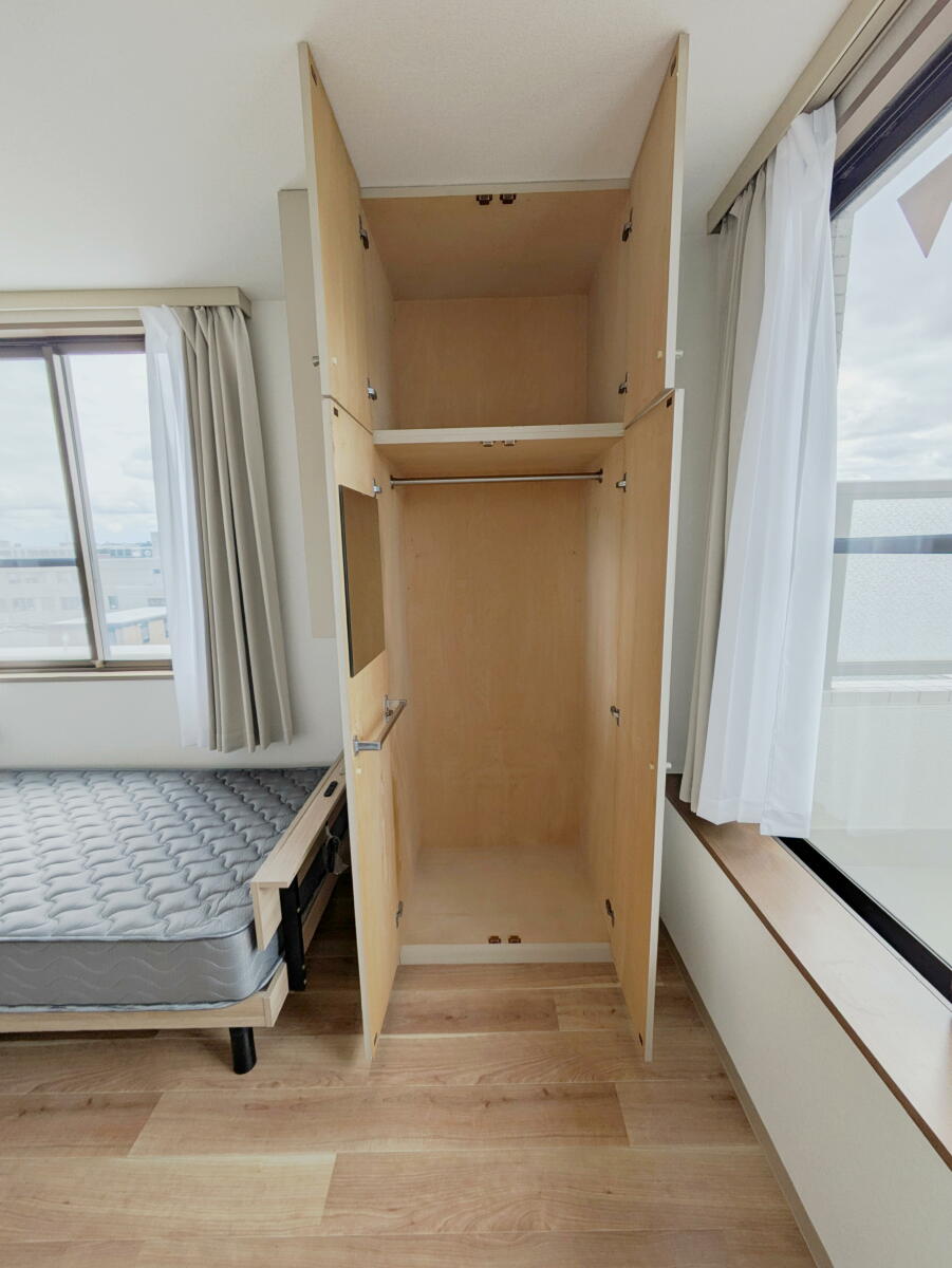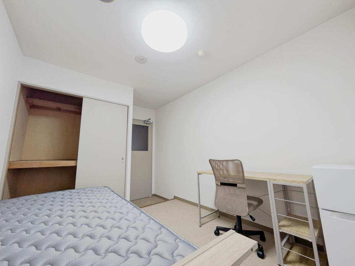 ベッド、エアコン、冷蔵庫、机、椅子、収納、カーテン、ベランダ(洗濯物干付き)、Wifi